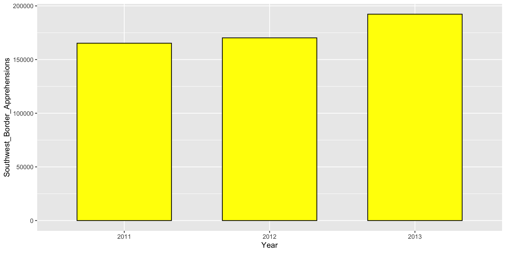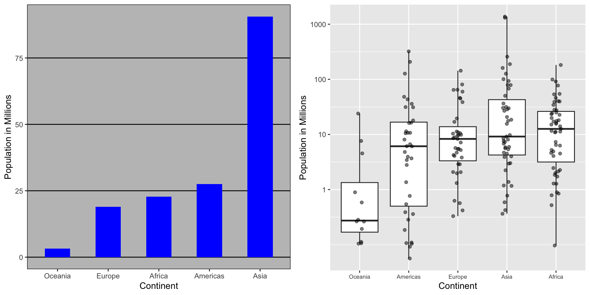 This is because, by using a barplot, we are implying the length is proportional to the quantities being displayed.