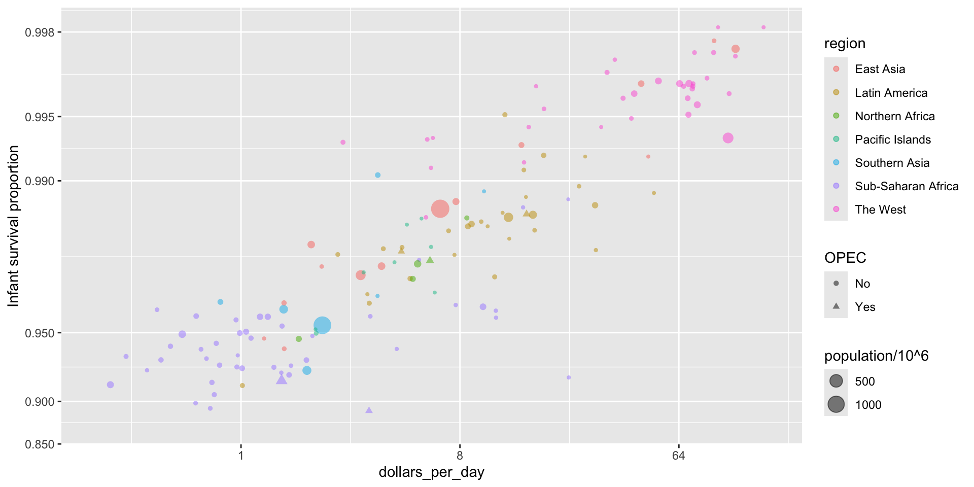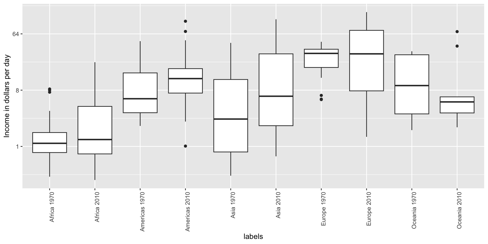 We have focused on displaying single quantities across categories. We now shift our attention to displaying data, with a focus on comparing groups.