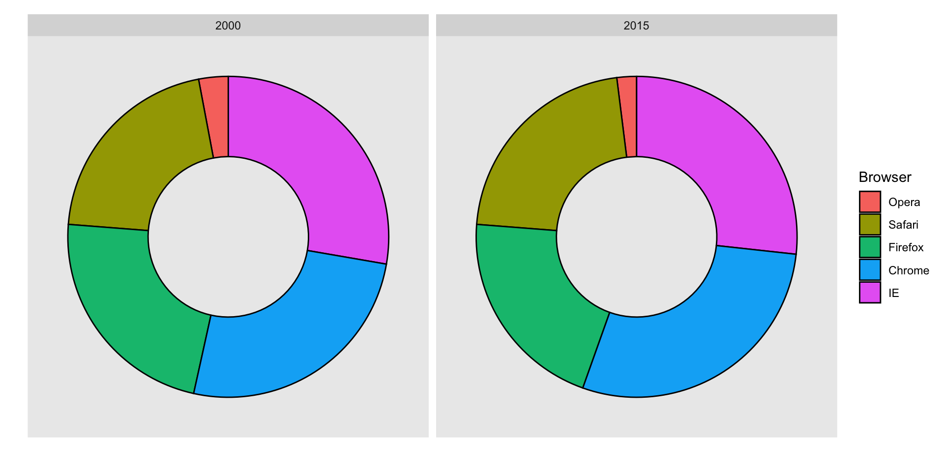Suppose we want to report the results from two hypothetical polls regarding browser preference taken in 2000 and then 2015.