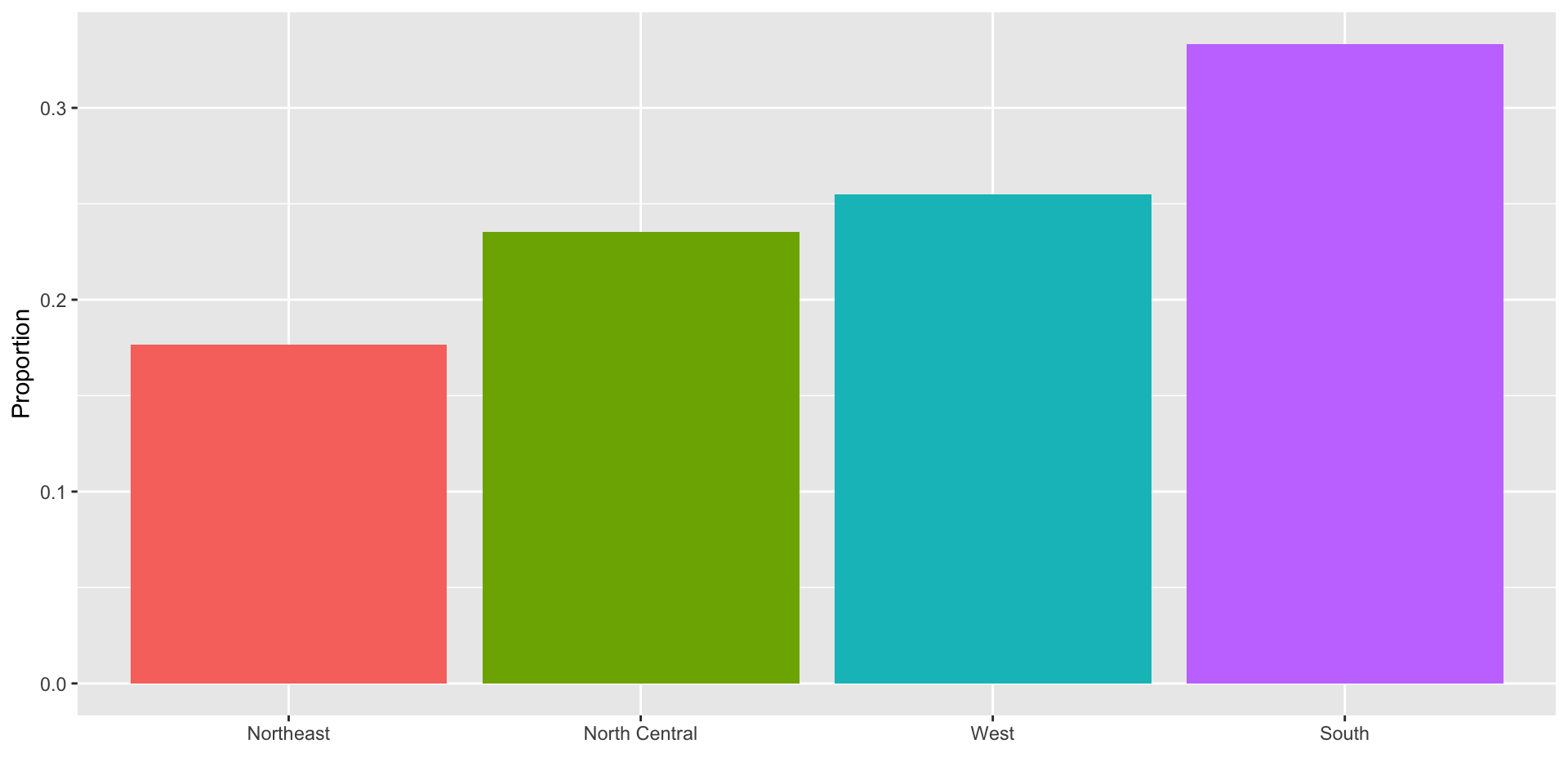 For example, with categorical data, the distribution simply describes the proportion of each unique category: