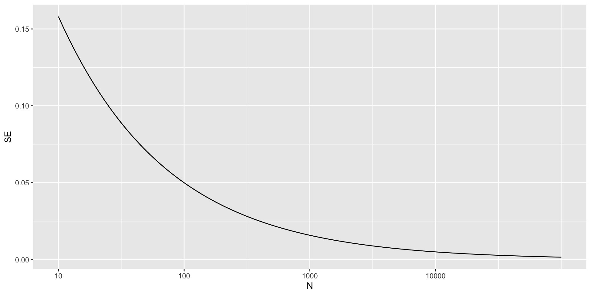 \[ \mbox{SE}(\bar{X}) = \sqrt{p(1-p)/N} \]