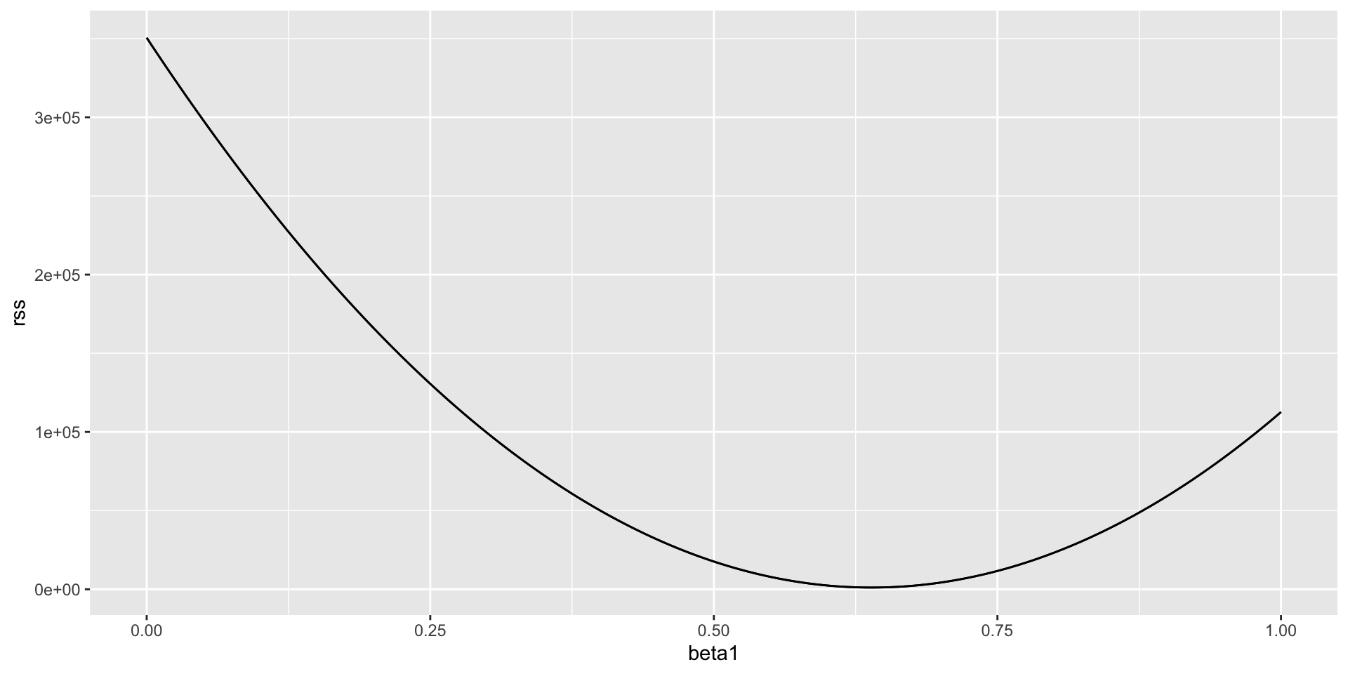 We can see a clear minimum for \(\beta_1\) at around 0.65.