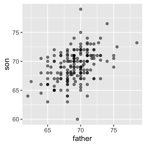 cor, between father and son’s heights is about 0.5:Warning