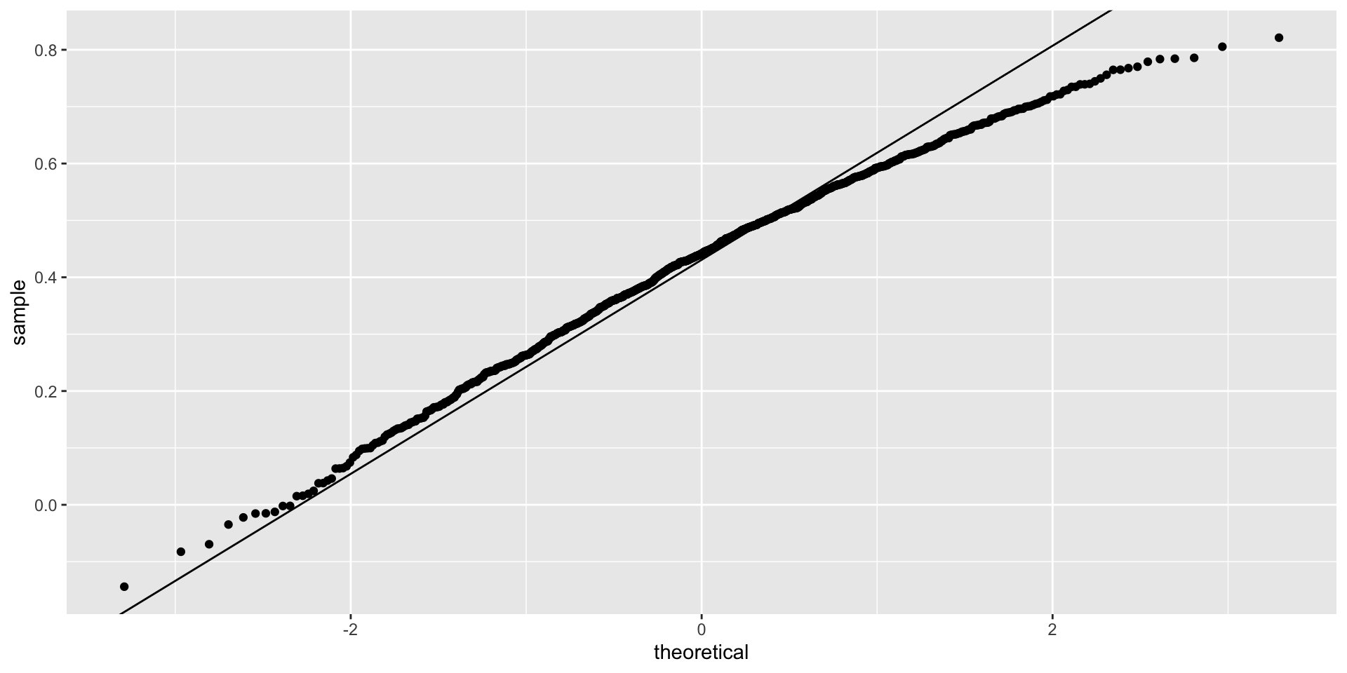 In cases in which we assume the errors follow a normal distribution, a qqplot of standardized \(r\) should fall on a line when plotted against theoretical quantiles.