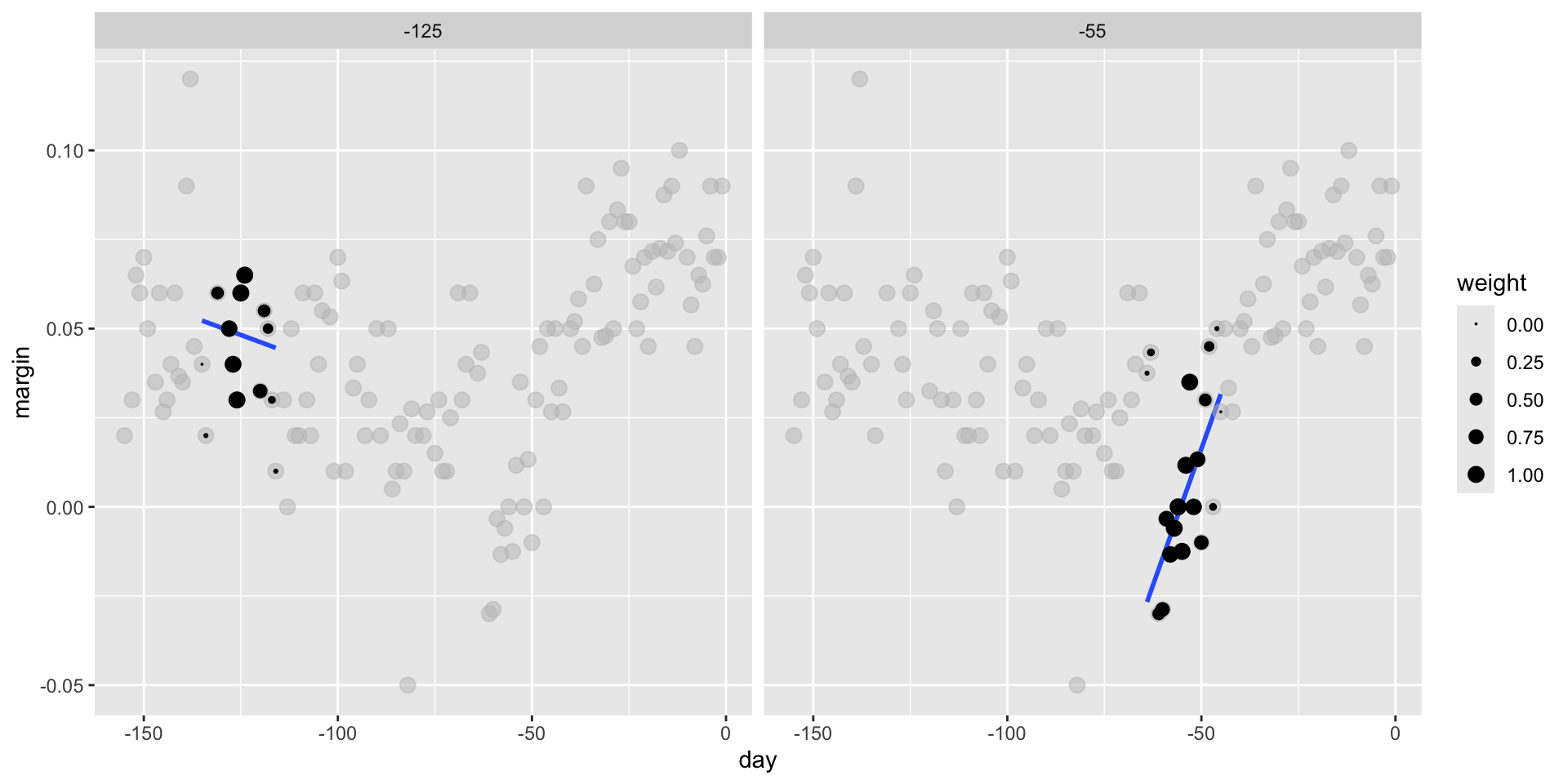 Instead, we are simply interested in learning the shape of the trend after the election is over.