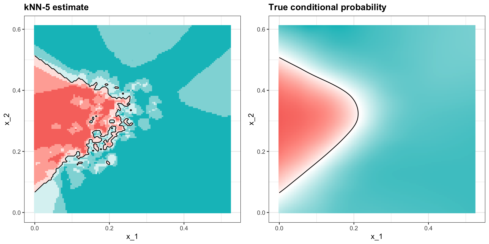 With kNN we estimate \(p(\mathbf{x})\) using smoothing.