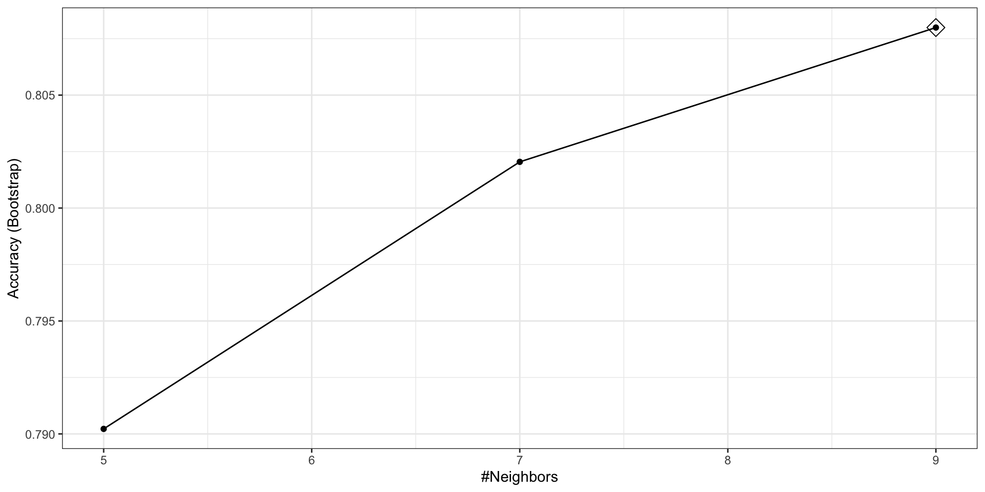 Since we are fitting \(49 \times 25 = 1225\) kNN models, running this code will take several seconds.