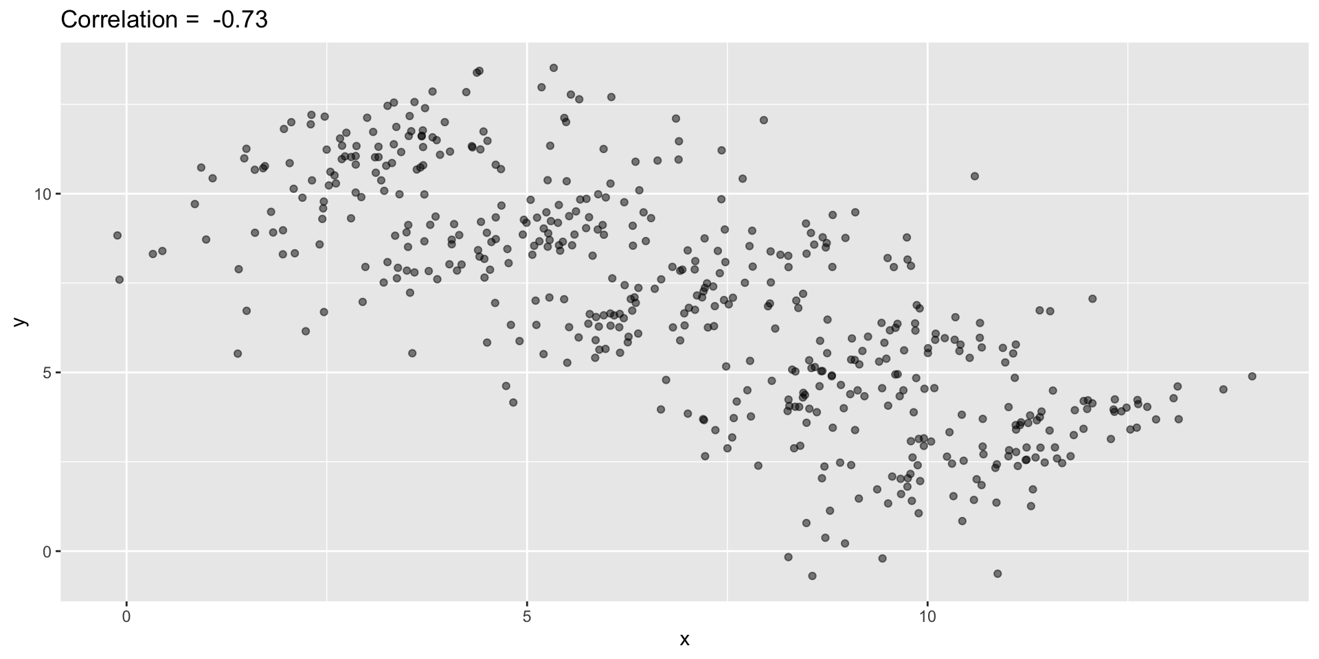 You can see that \(X\) and \(Y\) are negatively correlated.