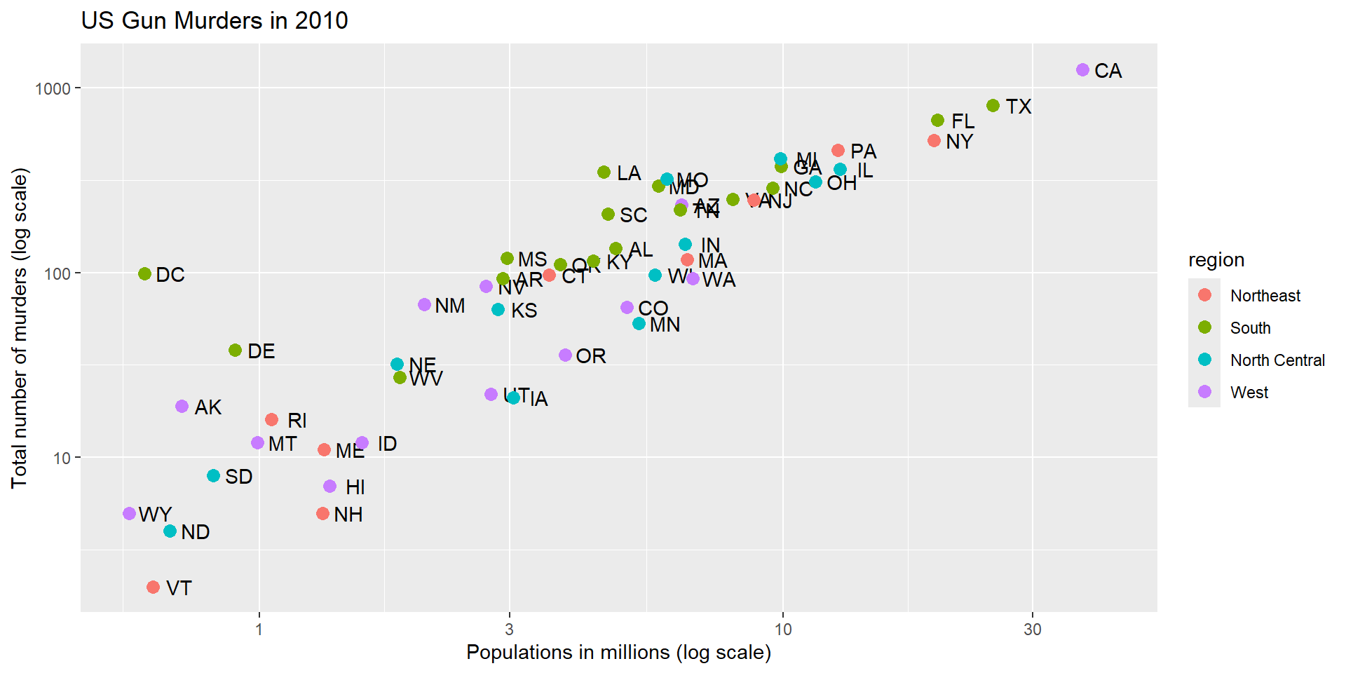 geom_text does not know where to find abb: it’s a column name and not a global variable.lattice package to produce high quality graphics - R has lots of ways to do thingsggplot2size can be an aesthetic mapping, but here it is not, so all points get bigger.nudge_x is not an aesthetic mapping.aes in the ggplot function:aes by defining one in the geometry functions:labs function:A legend is added automatically!
