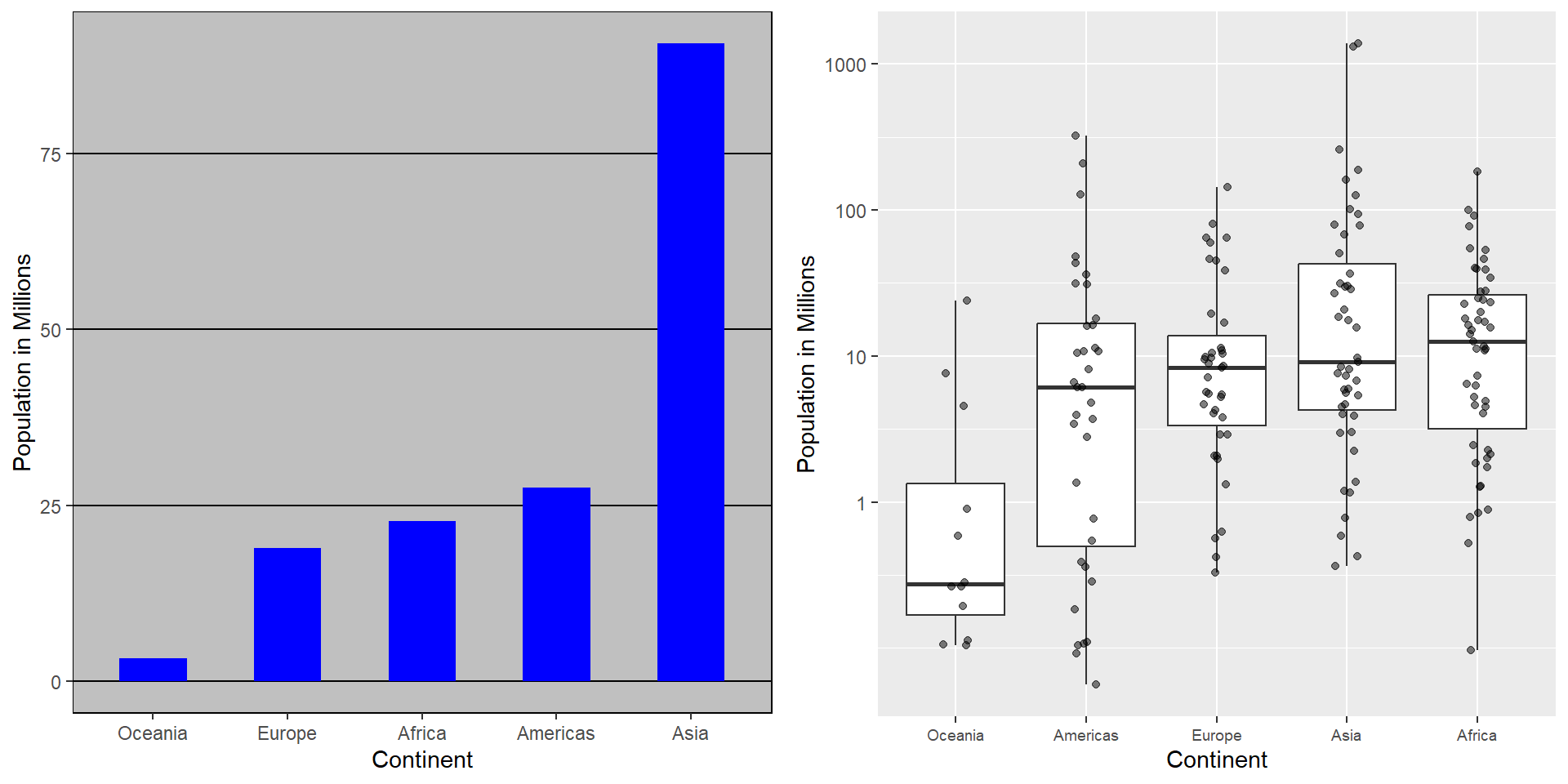 Here is a terrible plot comparing population across continents