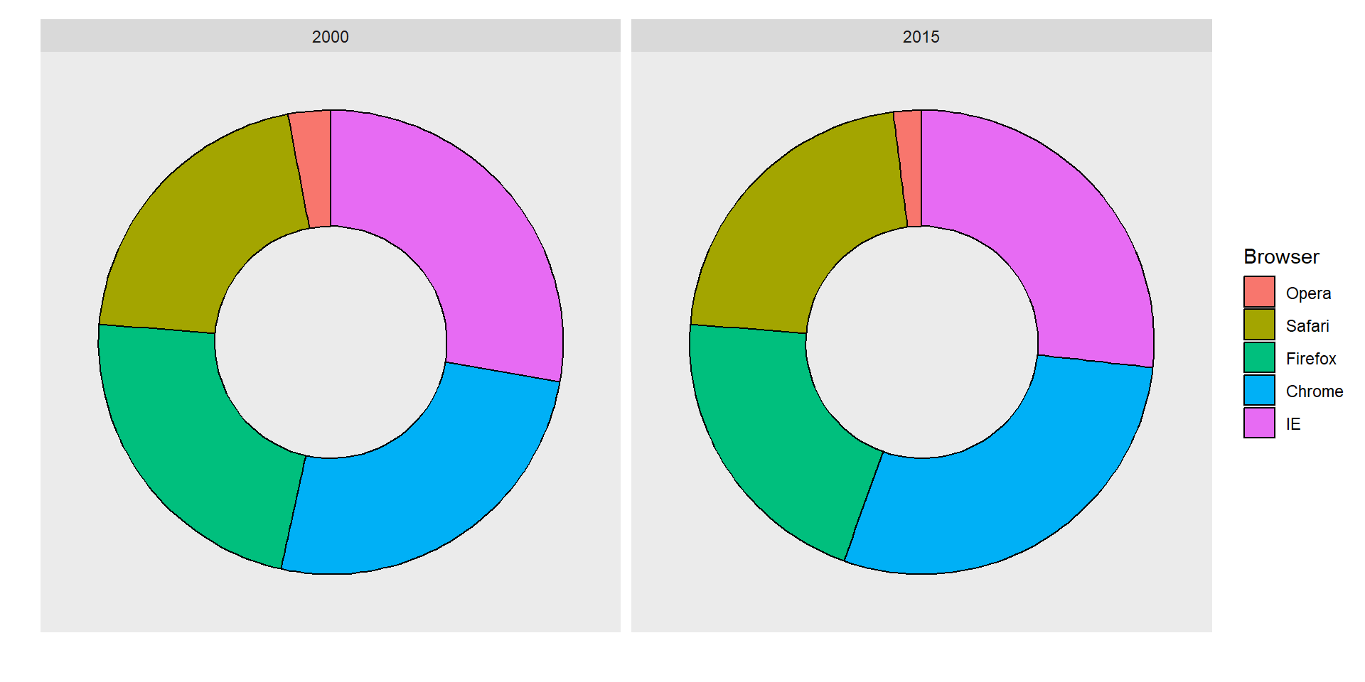 Suppose we want to report the results from two hypothetical polls regarding browser preference taken in 2000 and then 2015.