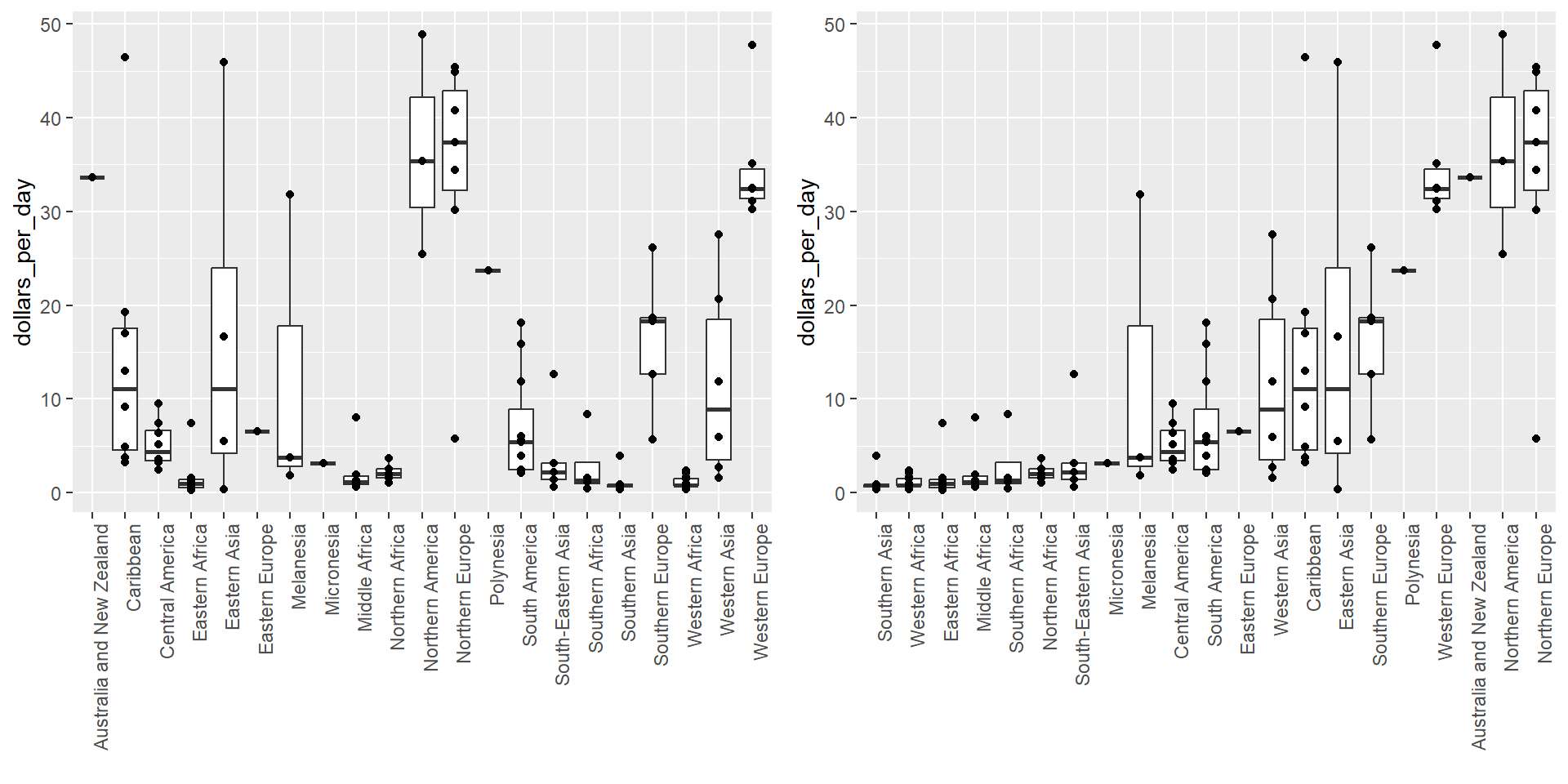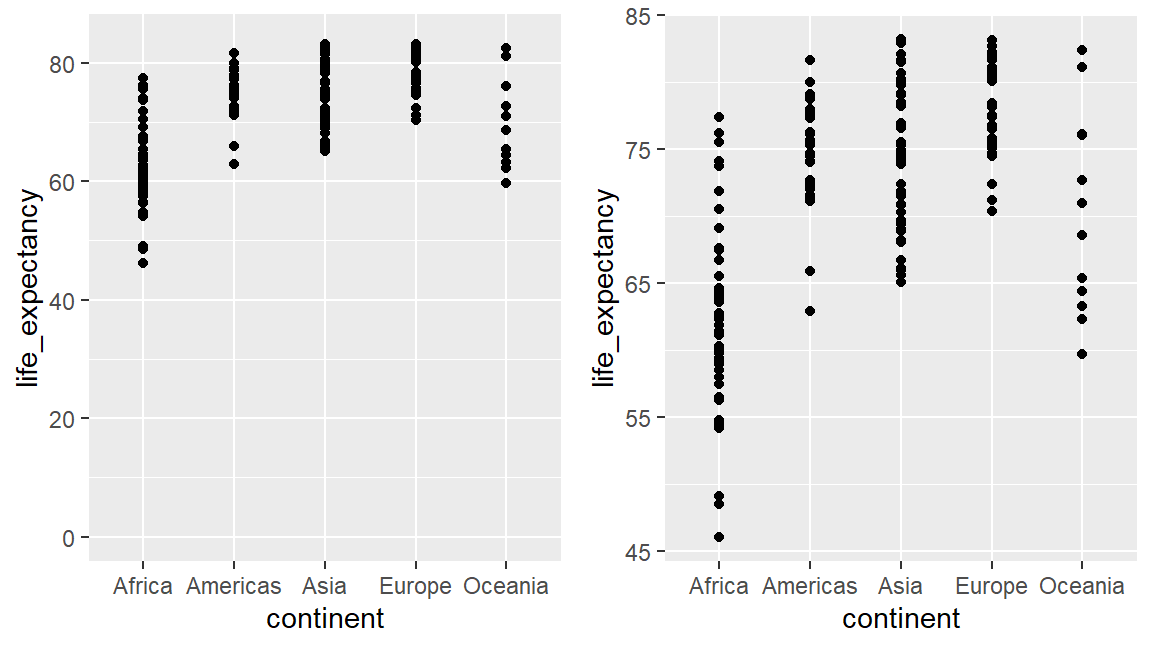 Note that the plot on the right is more informative: