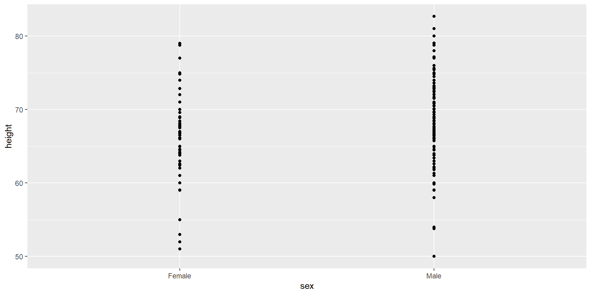 Since there are so many points, it is more effective to show distributions rather than individual points. We therefore show histograms for each group: