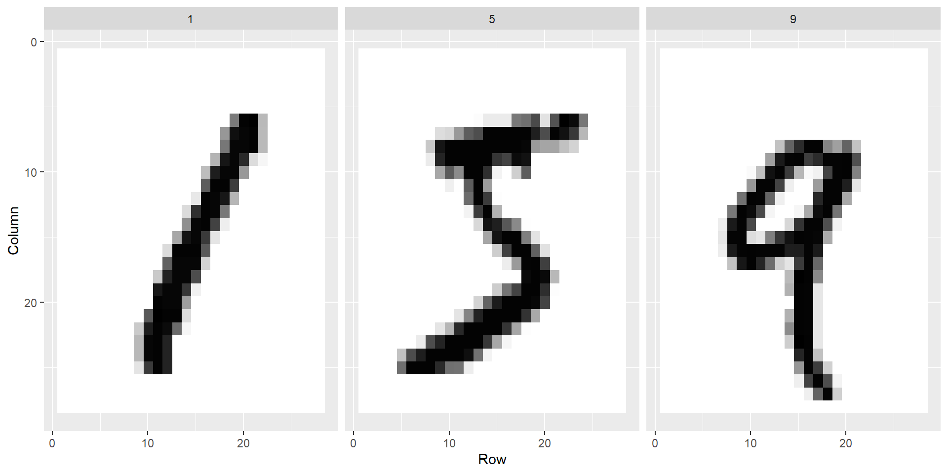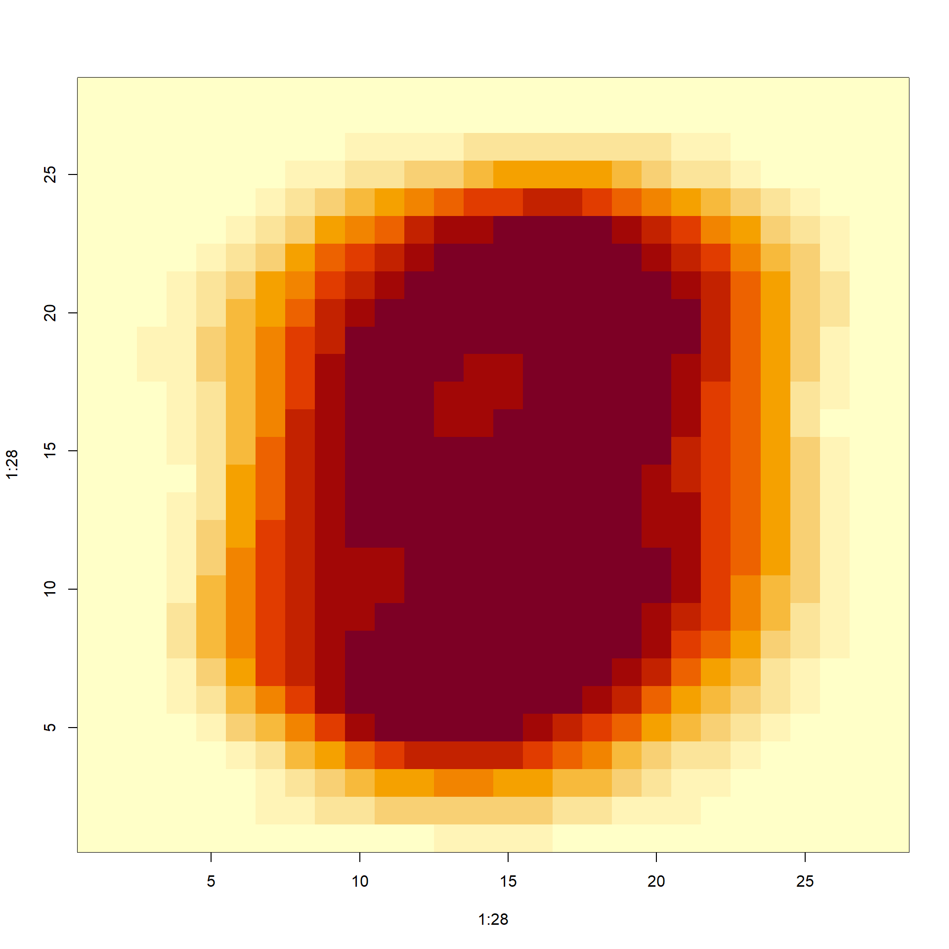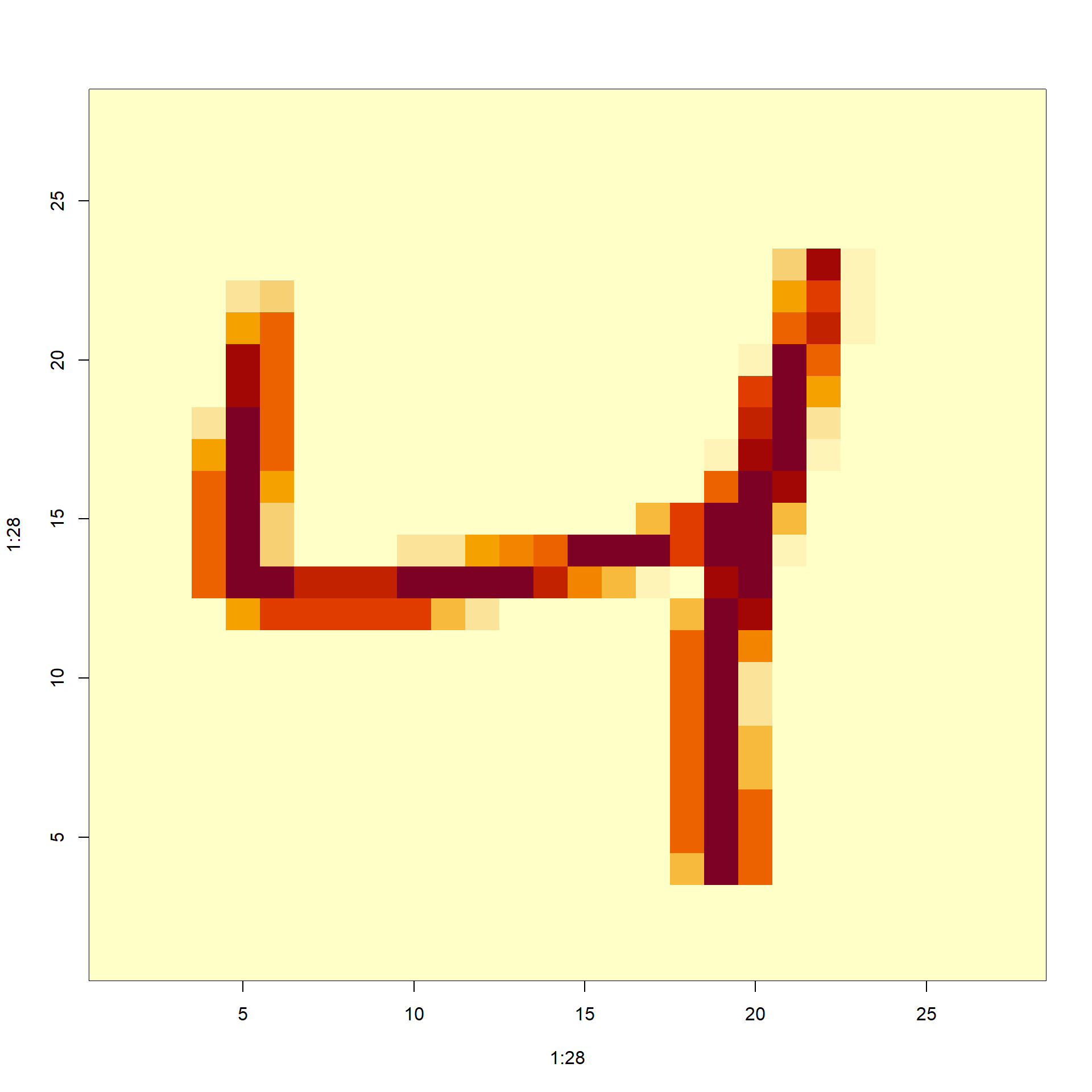 We can assume these were entered in order and convert them back to a \(28 \times 28\) matrix using: