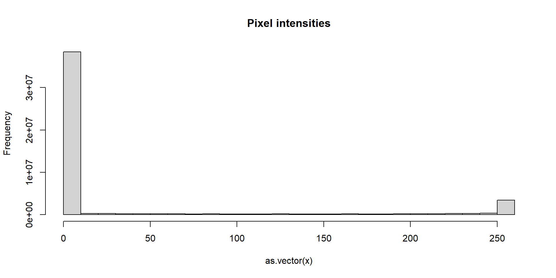 NA entries of a matrix to something else:The plot shows a clear dichotomy which is explained as parts of the image with ink and parts without.