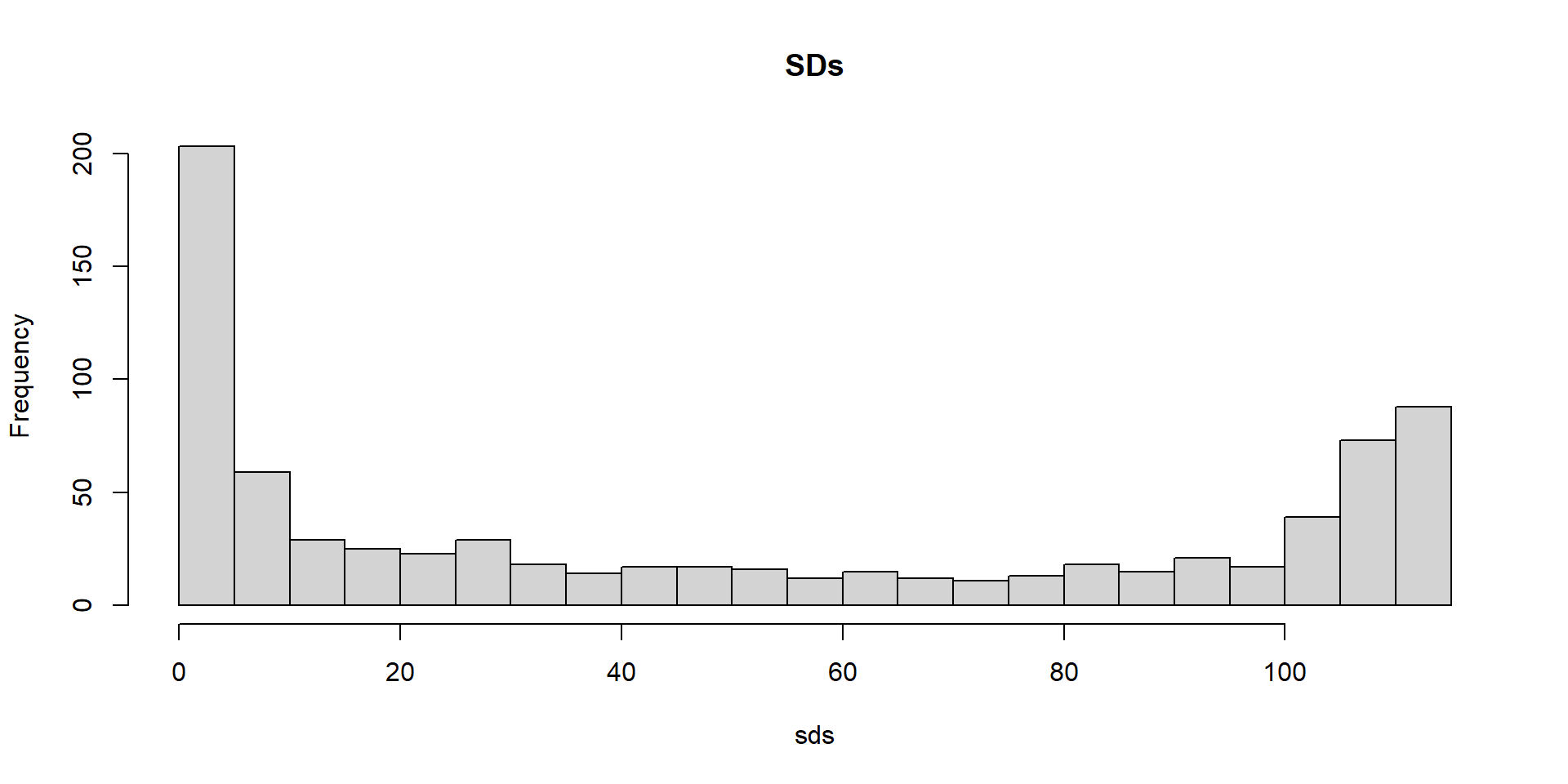 colSds function from the matrixStats package:We could remove features that have no variation since these can’t help us predict.