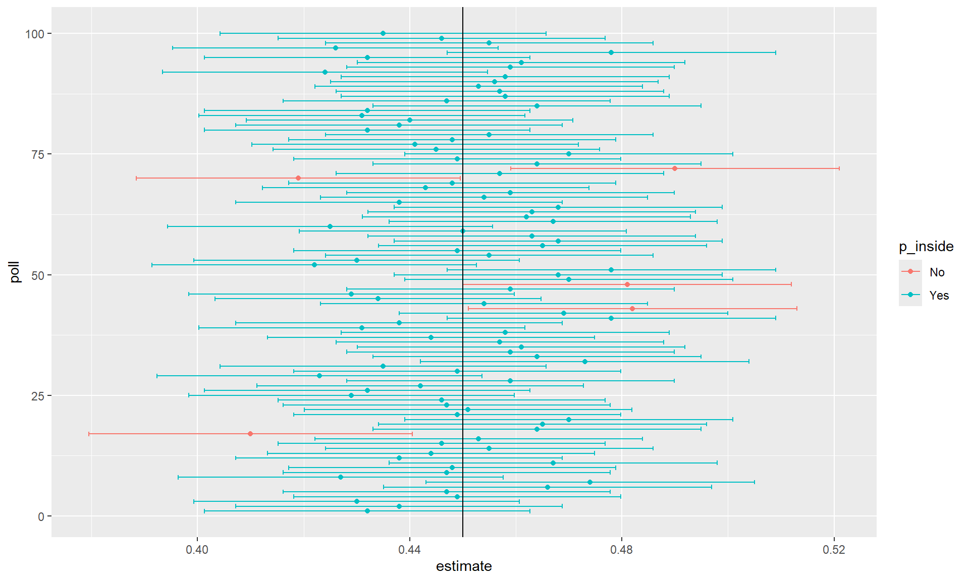 Likewise, a bold pollster that reports very small intervals and misses the mark most of the time will not be considered a good pollster.