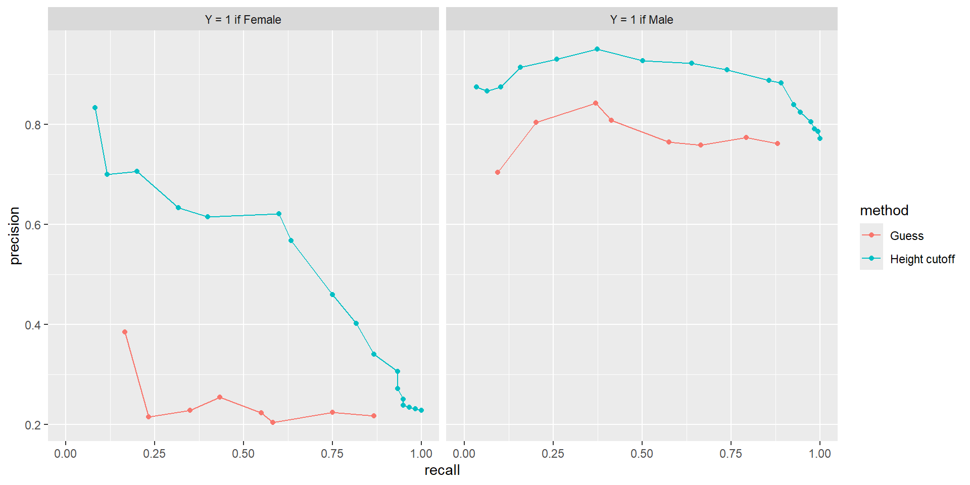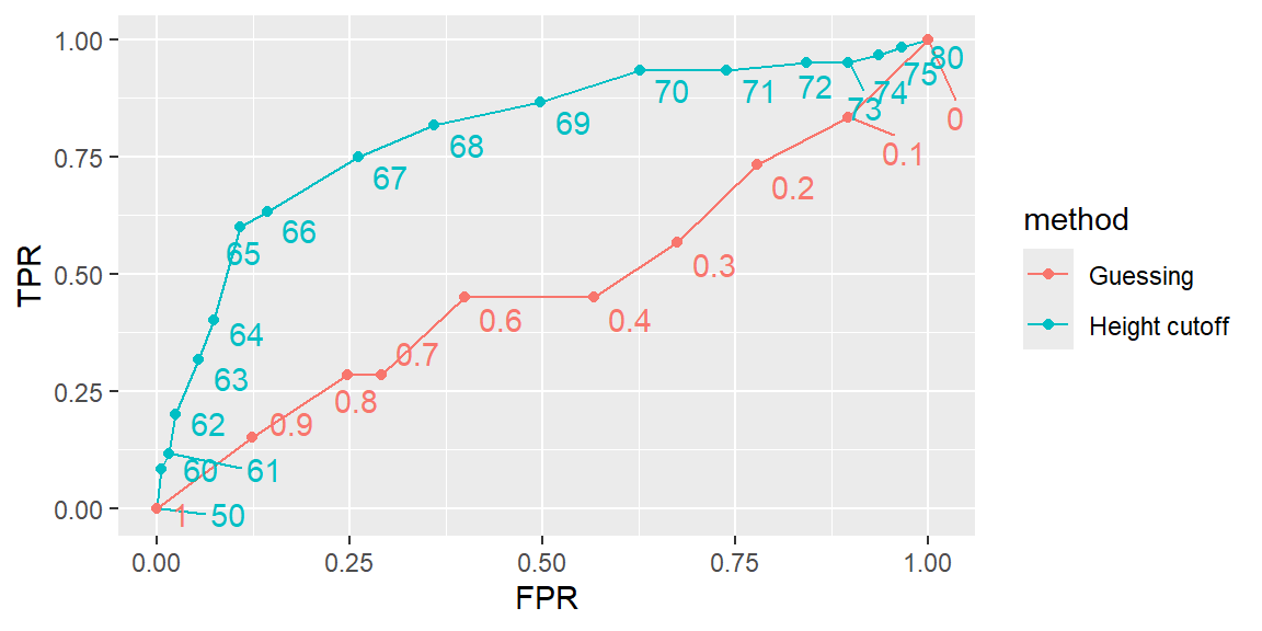 Note that, unlike TPR and TNR, precision depends on prevalence since higher prevalence implies you can get higher precision even when guessing.