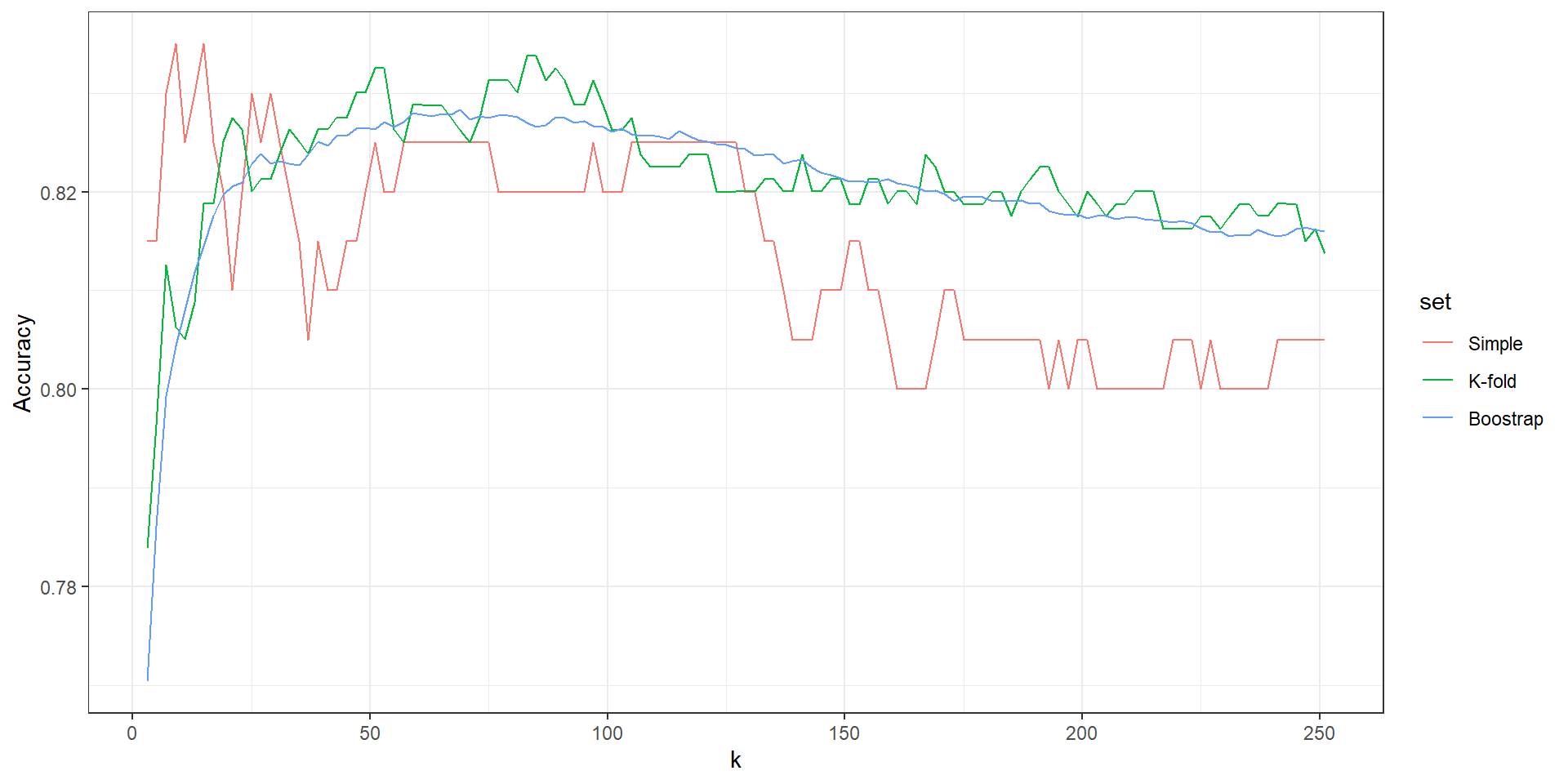 However, larger values of \(B\) will have much slower computation time: for example, 100-fold cross validation will be 10 times slower than 10-fold cross validation.