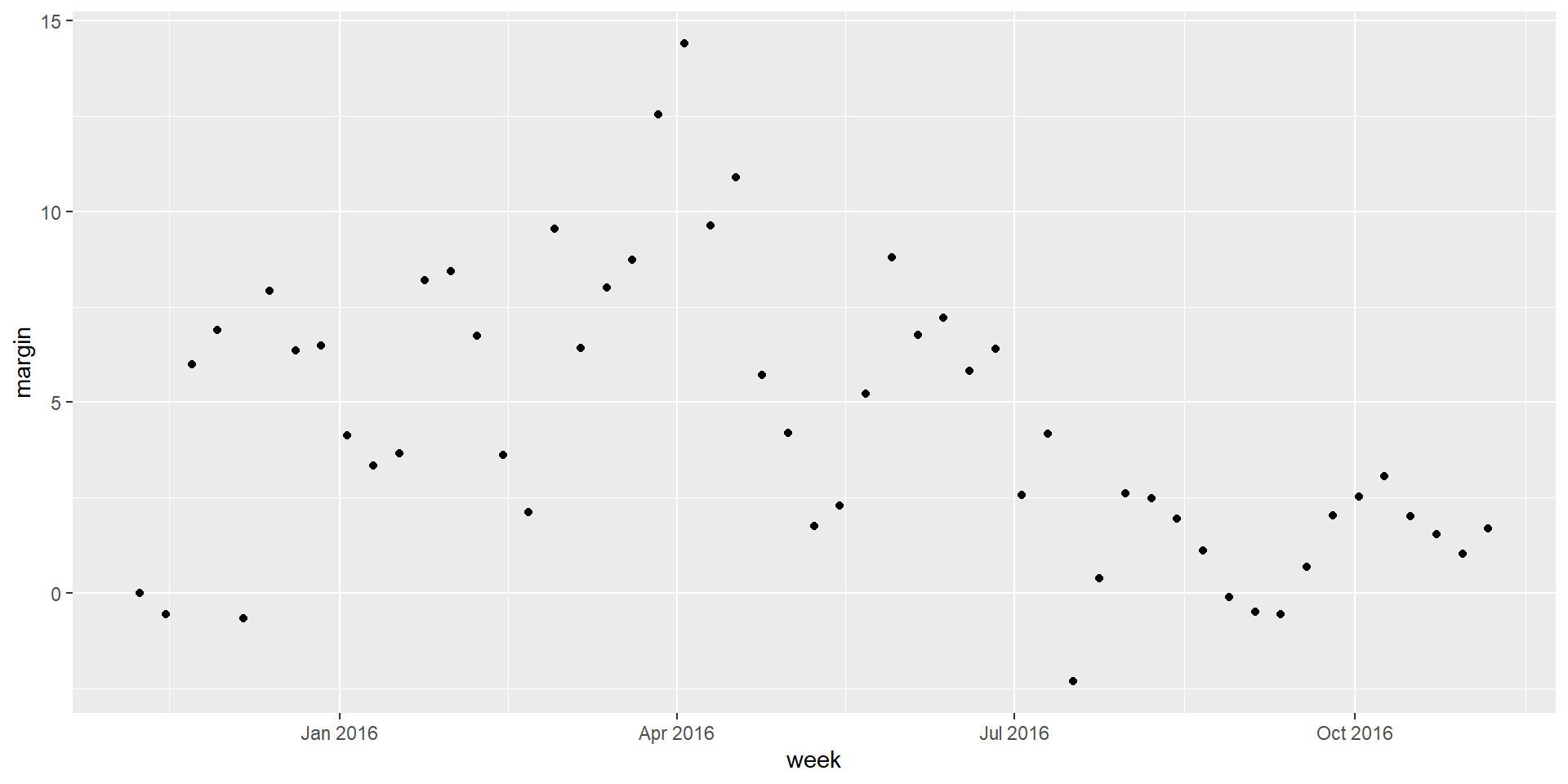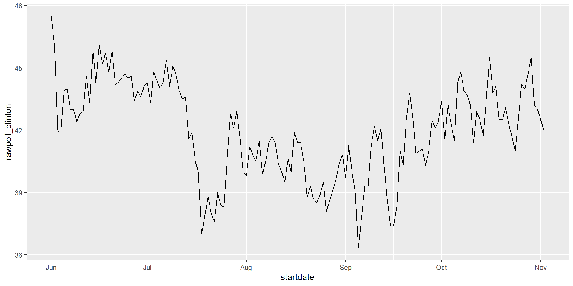 ggplot(aes(startdate, rawpoll_clinton)) +